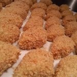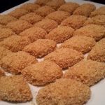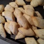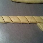 في انا نمزج جميع المكونات حتى نحصل على عجين متجانس تم تشكل على شكل عصى ويبسط قليلا تم يقطع على شكل معين تم تصفف الحلوى في صينية وتدخل الفرن عندما تخرج الحلوة من الفرن تغمس في العسل و بسرعة تفند في الكاوكاو والصور توضح اكتر