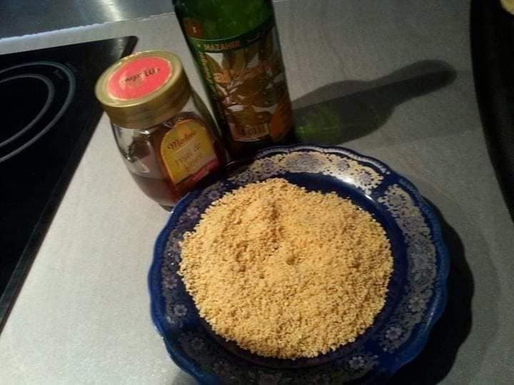كاوكاو محمر و مطحون جيدا كاس صغير عسل2 معالق كبار ماء الزهر نخلط الكل ونضع الخليط حتى يسخن